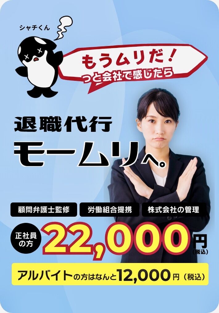 | 退職代行サービス(たいしょくだいこうサービス)とは、労働者の退職の手続を代行するサービスである。社会的に転職者数が増加したことや、会社側の執拗な引き留めなどの労働問題がその背景にあると考えられている。退職代行は「民間業者」「労働組合」「弁護士法人」の3種類に分類される。 業務の内容は業者ごとに異なるが、大きくは以下で示すとおりである。… 5キロバイト (754 語) - 2025年4月9日 (水) 10:57 |