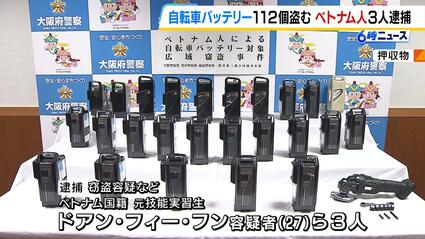 ドアン容疑者らはマンションの駐輪場などで犯行を繰り返したとみられ、盗んだバッテリーはSNSで知り合ったベトナム人に1個2000円で販売していたということです。