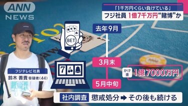 《オンカジ賭博逮捕》フジ社員「1か月半で1億7000万」驚愕の賭け金、気になるテレビ局員の“年収事情”