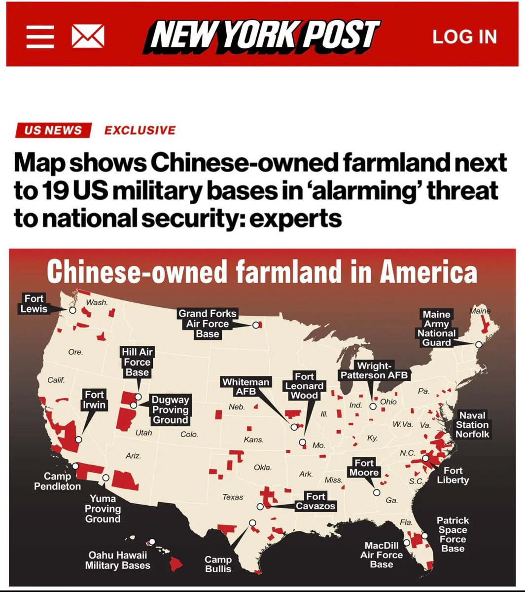 >>ロリンズ農務長官は「中国共産党による米国農地の取得から、わが国の農業システムの犯罪的搾取まで、われわれはこれを繰り返し目にしている」と指摘。
