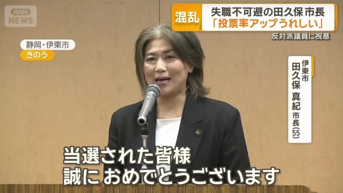 田久保氏は自身の学歴詐称疑惑を巡る不信任決議の可決を受け、9月10日に市議会を解散。今月19日投開票の市議選では、再度の不信任決議案に賛成する意向の19人が当選した。31日招集の臨時議会で決議案が再び可決され、田久保氏は失職する公算が大きい。