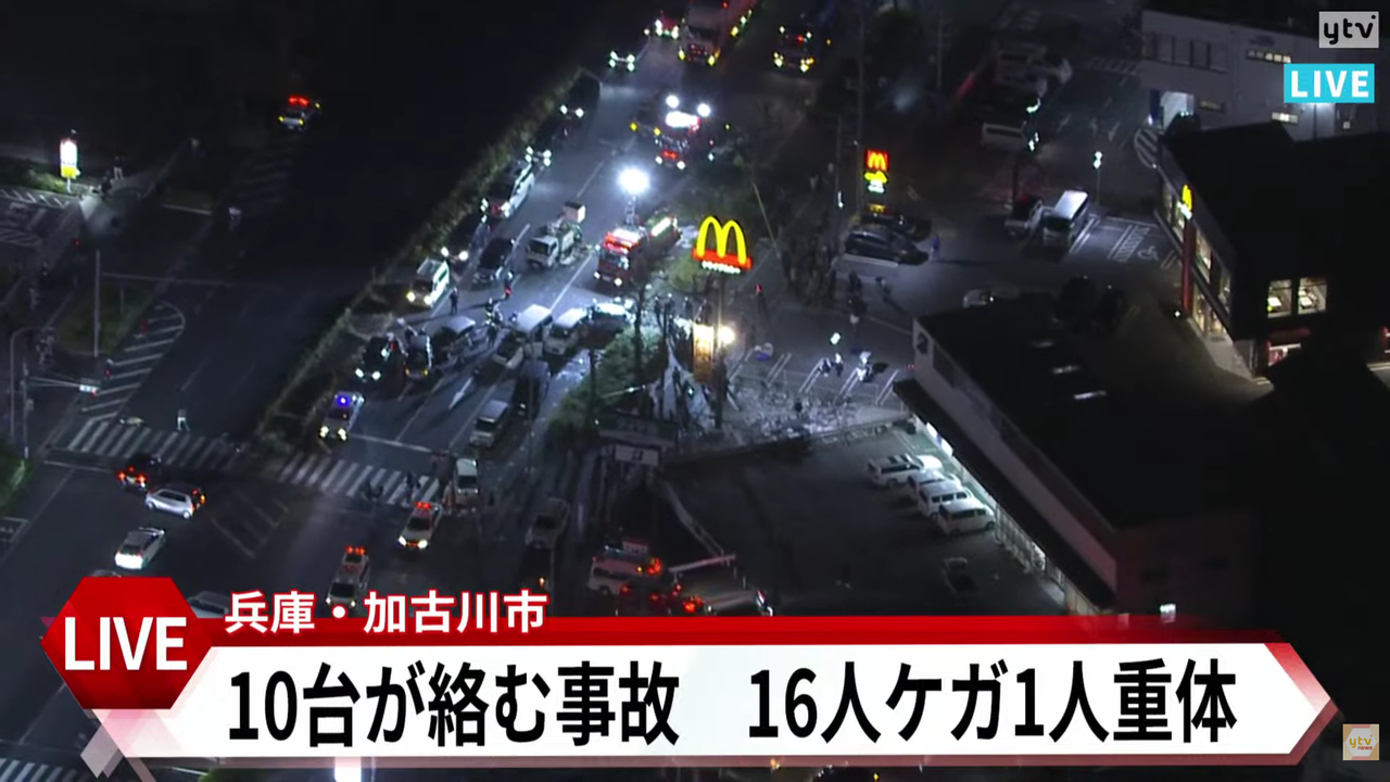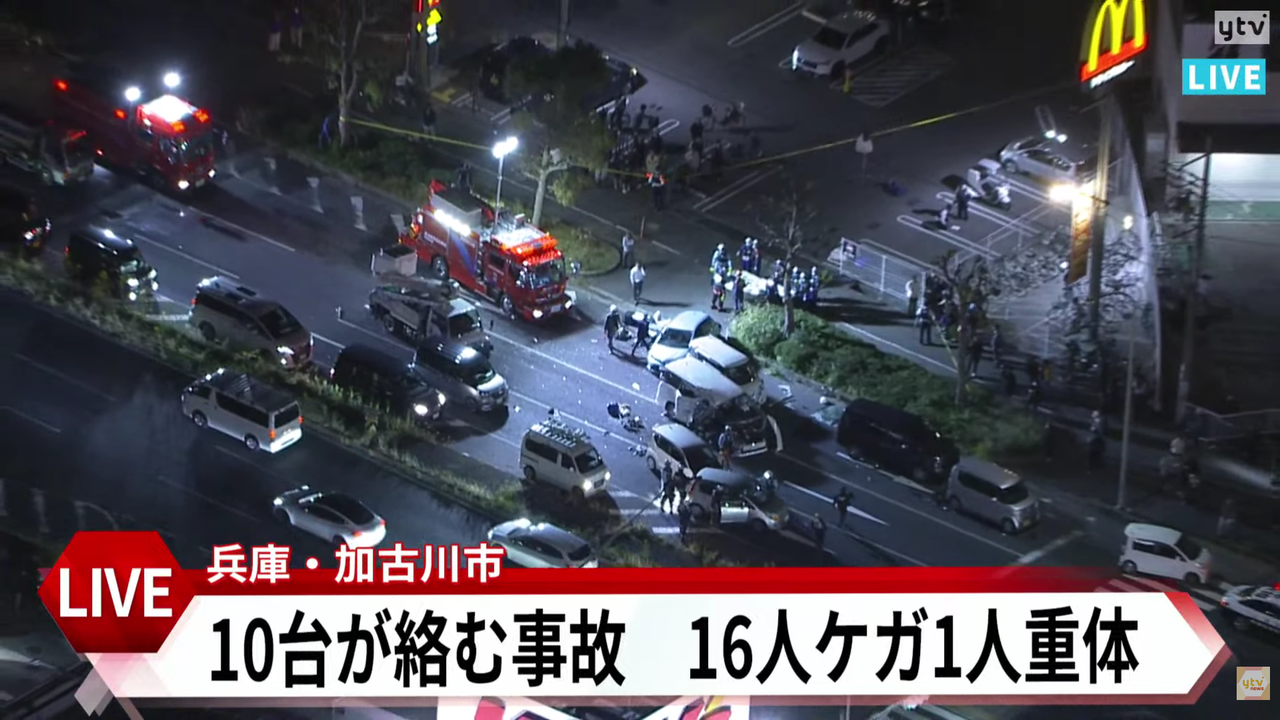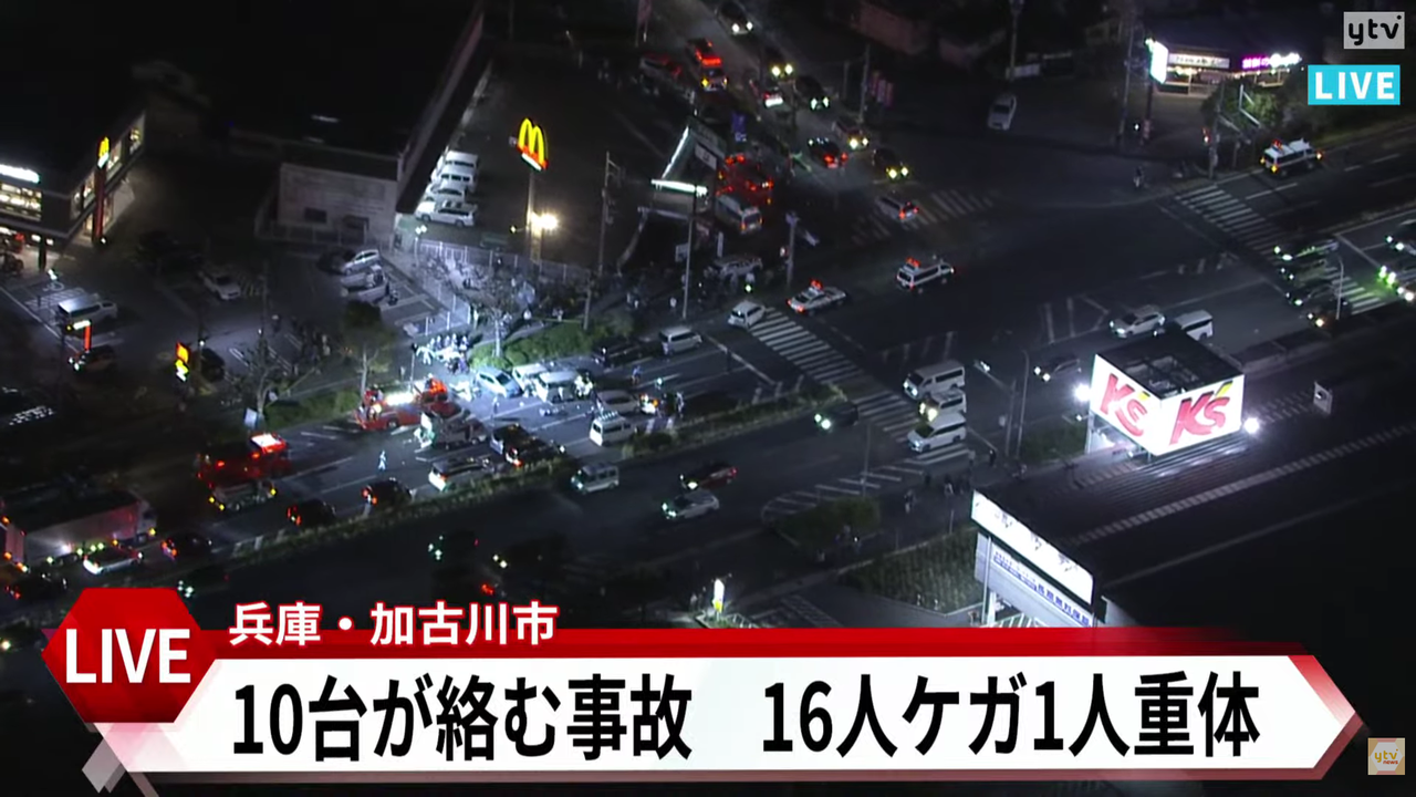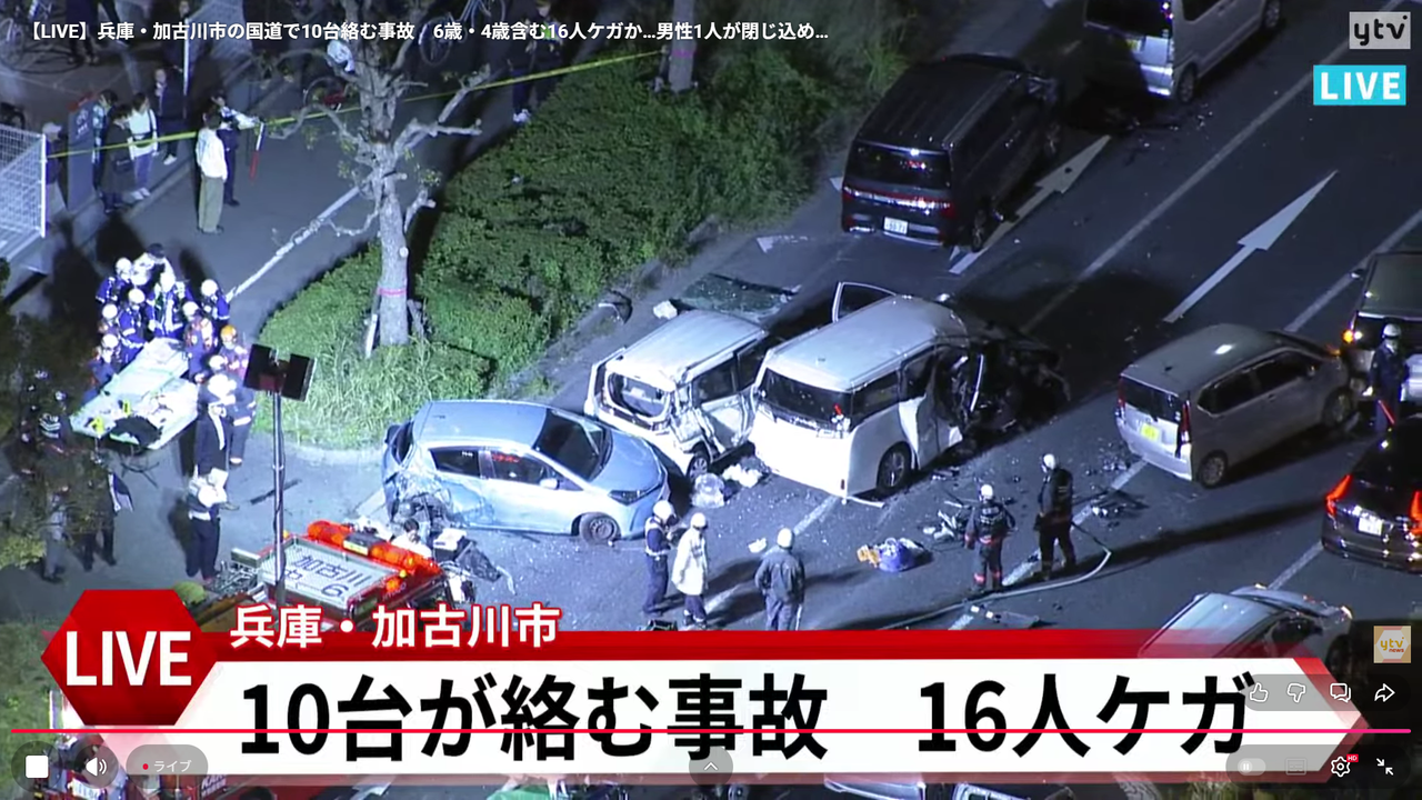 | 【速報】兵庫・加古川市で車10台絡む多重事故が発生 70代男性1人が死亡 他に15人がケガか(MBSニュース) - Yahoo!ニュース 【速報】兵庫・加古川市で車10台絡む多重事故が発生 70代男性1人が死亡 他に15人がケガか(MBSニュース) Yahoo!ニュース (出典:Yahoo!ニュース) |