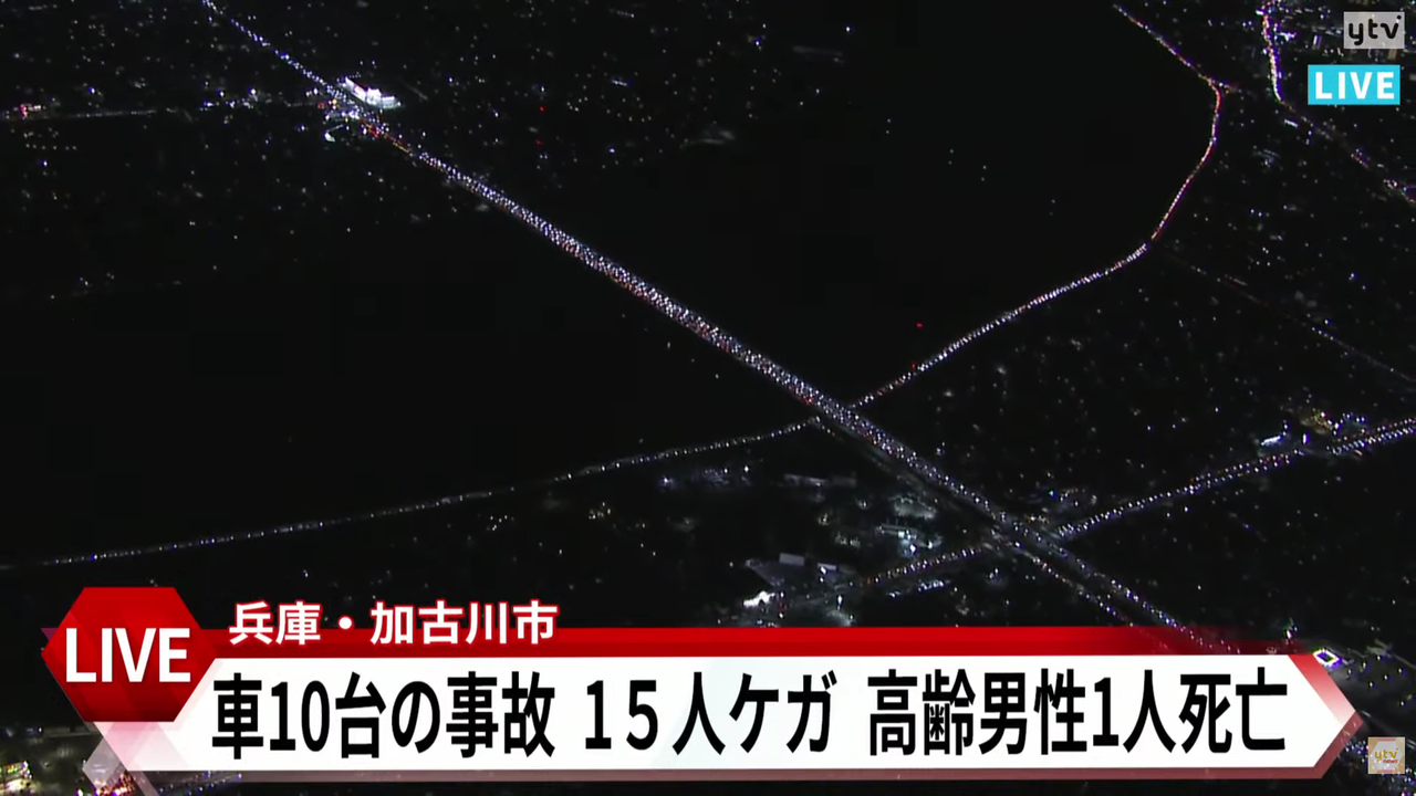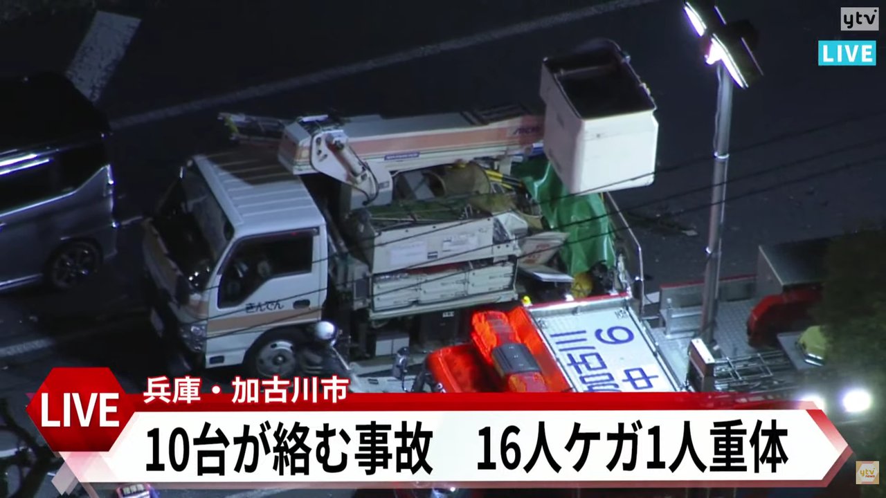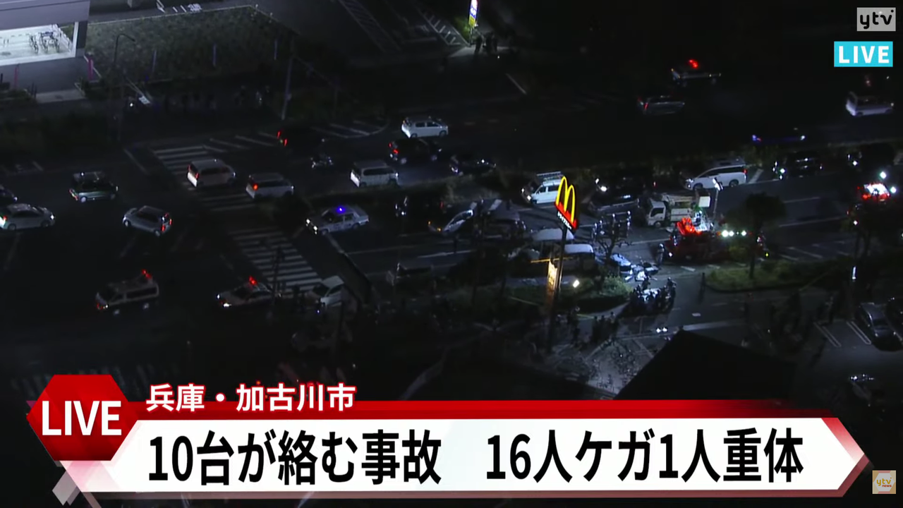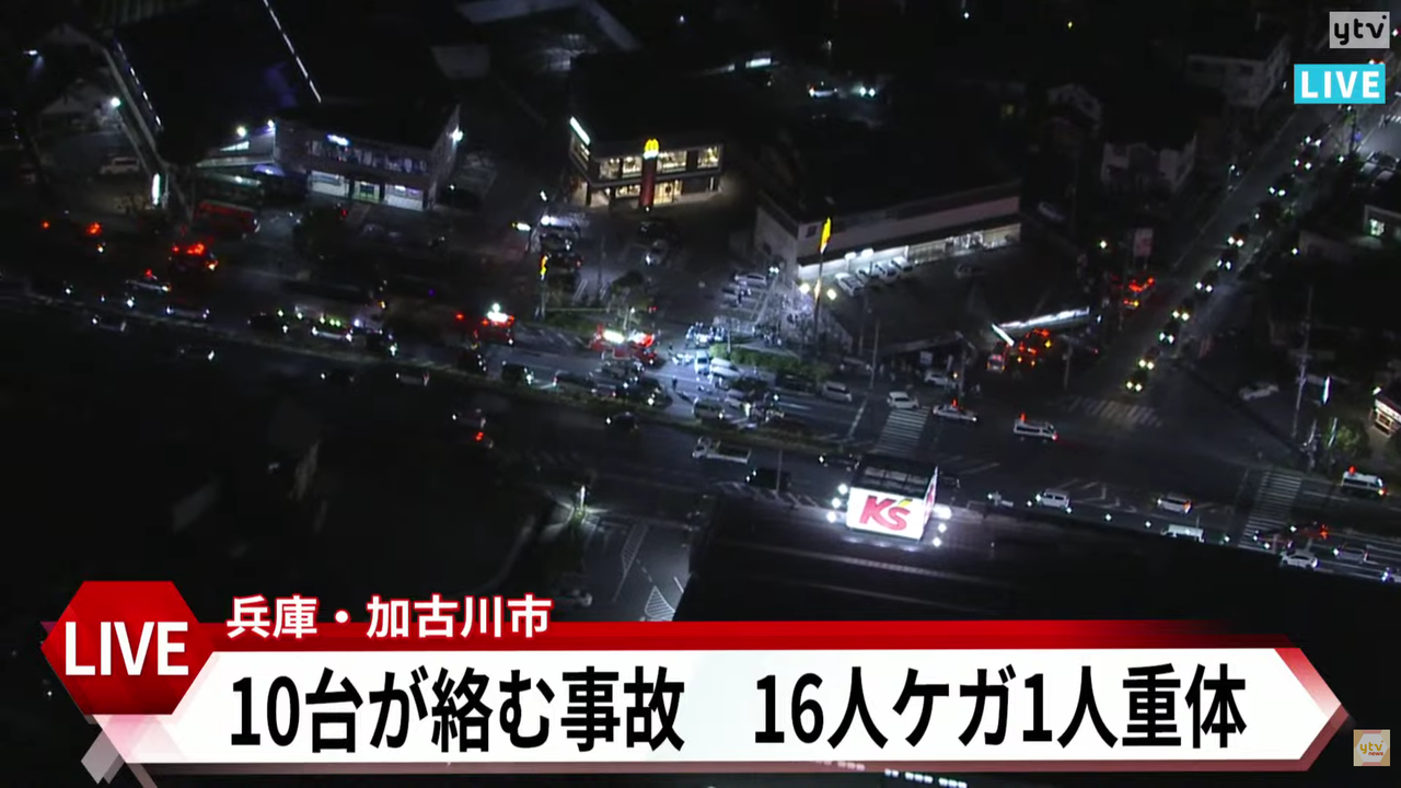 | 【速報】兵庫・加古川市で車10台絡む多重事故が発生 70代男性1人が死亡 他に15人がケガか(MBSニュース) - Yahoo!ニュース 【速報】兵庫・加古川市で車10台絡む多重事故が発生 70代男性1人が死亡 他に15人がケガか(MBSニュース) Yahoo!ニュース (出典:Yahoo!ニュース) |