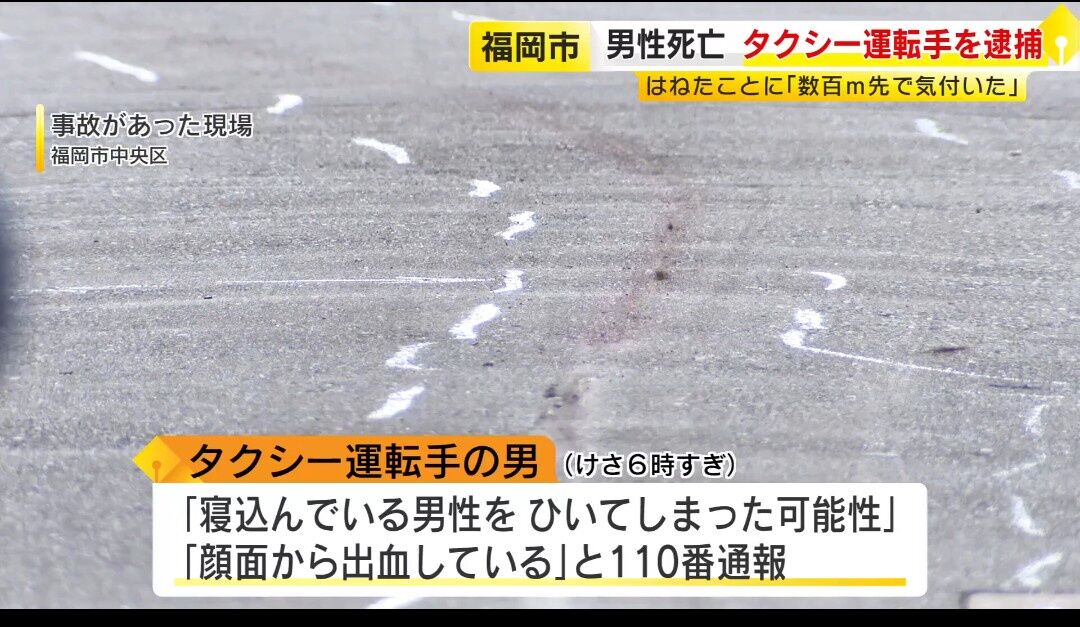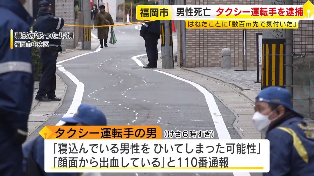 タクシーに数百メートル引きずられ男性会社員(25)死亡 運転手の男(59)を逮捕 福岡市中央区今泉「インペックス通り」