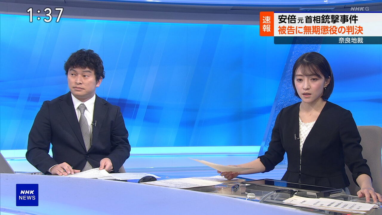 | 安倍元総理銃撃事件 奈良地裁 山上被告に求刑通り無期懲役の判決 安倍元総理銃撃事件で殺人などの罪に問われた山上徹也被告の裁判員裁判で、奈良地裁は「極めて危険で悪質な行為で、経緯や動機に大きく酌むべき事情は見当た… (出典:奈良テレビ放送) |