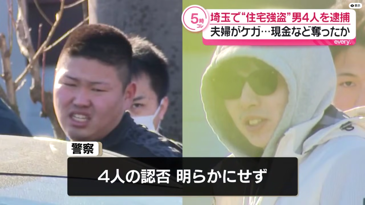 | 狭山市の強盗致傷事件 17歳~25歳の4人を逮捕 夫婦を暴行し現金など奪ったか(日テレNEWS NNN) - Yahoo!ニュース 狭山市の強盗致傷事件 17歳~25歳の4人を逮捕 夫婦を暴行し現金など奪ったか(日テレNEWS NNN) Yahoo!ニュース (出典:Yahoo!ニュース) |